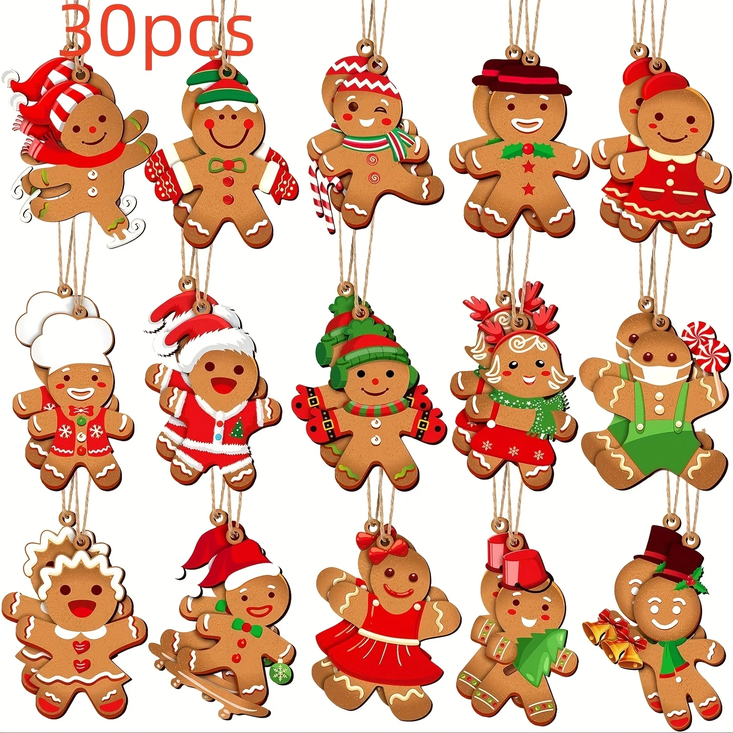 30-Piece Christmas Gingerbread-Shaped Ornaments Wooden Decorations...